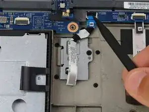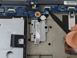 Используя лопатку, поднимите черный язычок разъема ZIF датчика отпечатков пальцев на материнской плате.