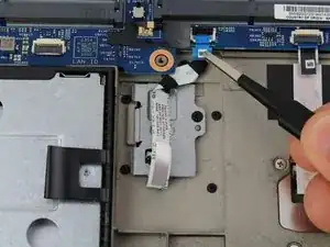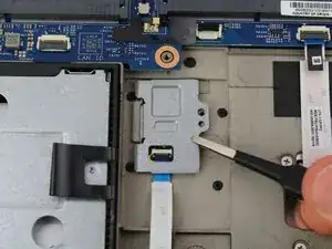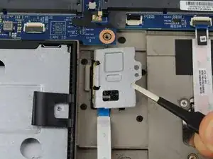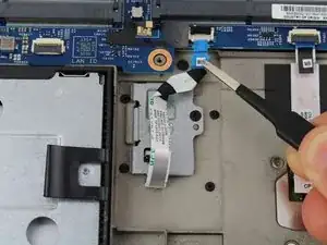 Вытяните кабель датчика отпечатков пальцев из разъема ZIF с помощью пары плоских пинцетов.