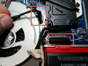 Отсоедините два кабеля. Поднимите защёлку ленточного кабеля перед тем, как вытащить его.
