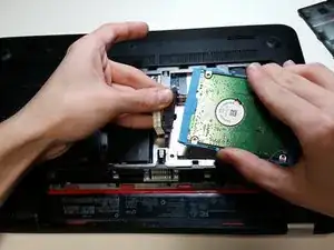 Извлеките жёсткий диск и отключите его ленточный кабель от диска и от материнской платы.