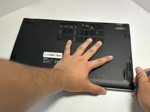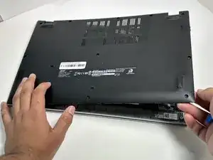 Вставьте инструмент для открытия в шов между нижней крышкой и шасси.