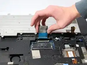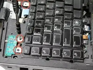 Левая часть клавиатуры крепится одним винтом и двумя соединительными кабелями.
