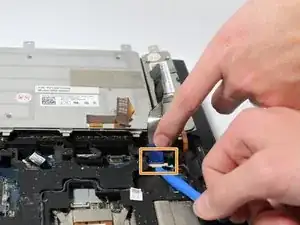 Найдите фиксирующую защёлку, удерживающую верхнюю секцию ноутбука.