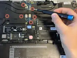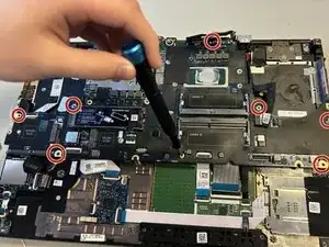 Используя отвертку Phillips #0, удалите восемь винтов 2 мм, крепящих материнскую плату.