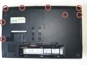 Снимите восемь винтов 8.6 мм с верхней части нижней панели ноутбука.