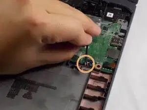 Возьмитесь за чёрный кабель и аккуратно отсоедините его от материнской платы.
