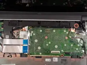 Выкрутите винты JIS #000, крепящие деталь с динамиком к основанию ноутбука.