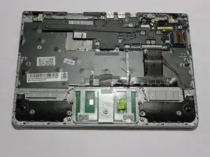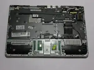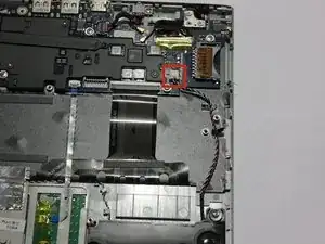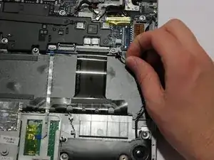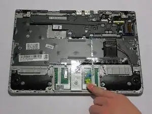 Поднимите кусок ленты, закрывающий ленточный кабель тачпада.