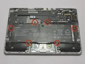 Снимите шесть винтов 3.5 мм, фиксирующих батарею, используя крестообразную отвёртку Phillips #00.