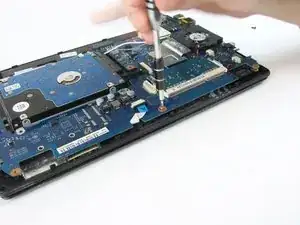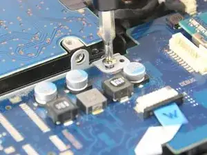 Используйте отвертку Phillips #0, чтобы выкрутить шесть винтов длиной 4,5 мм, удерживающих материнскую плату в корпусе.
