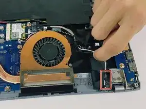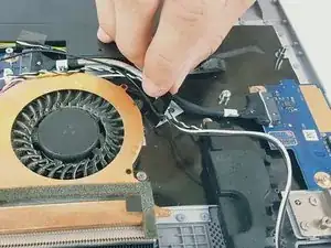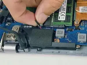 Распутайте провода, прикреплённые к внешней стороне правого динамика.