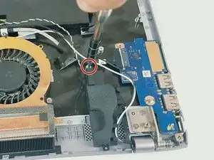 Отвинтите винт длиной 3.4 мм, крепящий левый динамик.