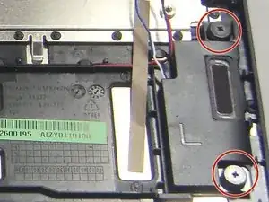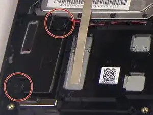 Выкрутите два винта Phillips №0 длиной 2 мм, фиксирующие левый динамик.