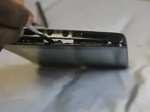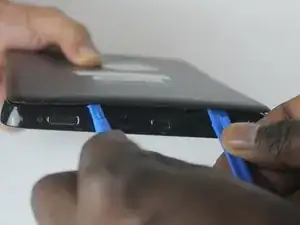 Проведите инструментом по задней крышке, чтобы отсоединить защёлки, соединяющие крышку с планшетом.