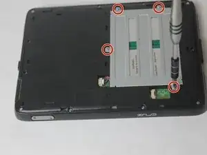 Снимите четыре винта в металлической пластине, закрывающей аккумулятор, используя отвертку Phillips #0.
