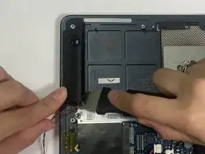 Осторожно приподнимите и выньте правый динамик с помощью инструмента для вскрытия.