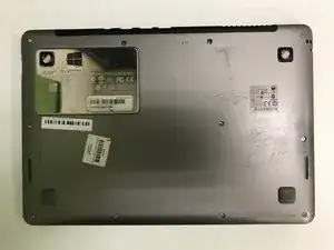 Положите ноутбук дном вверх.