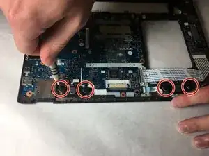 Удалите винт Phillips #00 длиной 3 мм возле нижней части синей платы.