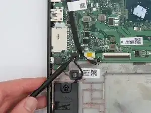 Отсоедините кабель динамиков от материнской платы в месте соединения, используя пинцет.