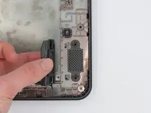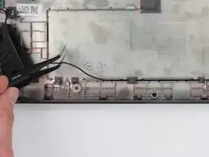 Динамики в этом ноутбуке получают вспомогательное питание через материнскую плату и приклеены к основанию корпуса. Неисправный комплект динамиков приведёт к приглушённому звуку, искажениям или полному отсутствию звука.
