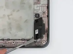 С помощью нейлоновой лопатки отведите динамик от корпуса ноутбука.