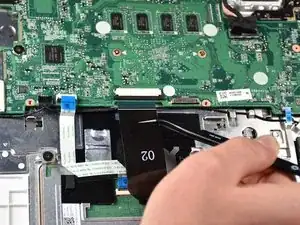 Отодвиньте обе стороны фиксатора трекпада с помощью узкого конца лопатки.