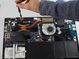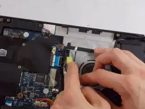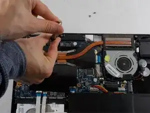 С помощью отвертки Phillips #1 удалите два винта, крепящих вентилятор к материнской плате.