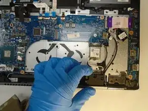 Пинцетом удалите кусочек ленты, закрывающей винт вентилятора.