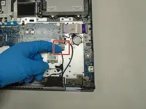 Пинцетом снимите кусочек черной ленты над разъемом кабеля батареи.