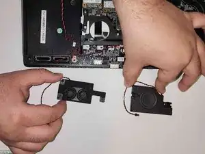 Осторожно в Lift выше левые и правые динамики, чтобы снять их с материнской платы.