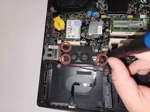 Снимите два винта с динамика, расположенного с правой стороны компьютера.