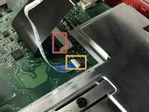 Используя пластиковую лопатку, отсоедините аудиоразъём, слегка сдвинув его фиксатор в сторону динамиков.