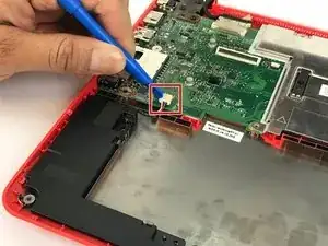 Используя пластиковую лопатку, аккуратно отодвиньте разъём от батареи, чтобы отсоединить кабель.