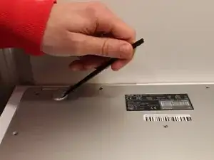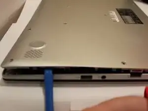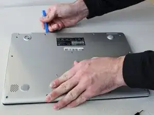 Используйте инструмент для открытия, чтобы аккуратно приподнять корпус базы и снять его с ноутбука.