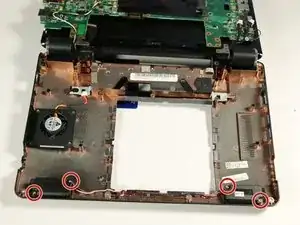 Найдите точки крепления в верхней части нетбука с каждой стороны. Эти детали соединяют экран с корпусом нетбука.