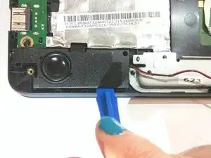 Осторожно подденьте правый динамик пластиковым инструментом для вскрытия.
