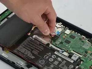 Отключите батарею от материнской платы, потянув за шлейф No-Fuss Ribbon из разъема.