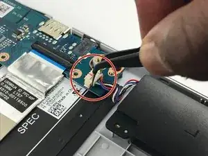 Используйте пинцет, чтобы потянуть штекер в сторону динамика.