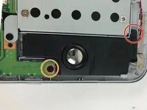 Теперь правый динамик: используйте крестовую отвертку Phillips #0, чтобы выкрутить два винта 4 мм вокруг динамика.