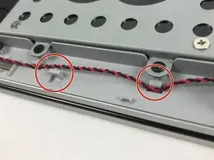 Отстегните скрученный красный и чёрный провод от защёлок между двумя динамиками. Это предотвратит повреждение проводов при извлечении динамиков.