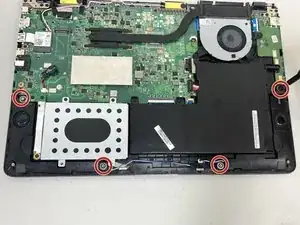 Если вы определили, что динамики требуют замены, убедитесь, что ноутбук выключен и отключён от зарядного устройства. Носите антиистирающие ESD-перчатки или заземлитесь, чтобы не повредить внутренние компоненты.