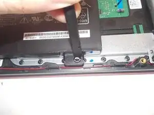 Поднимите батарею и извлеките ее из ноутбука.