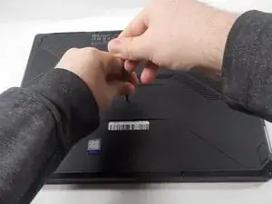 Переверните ноутбук, чтобы задняя панель оказалась сверху.