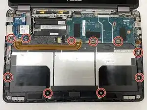 Удалите все десять винтов удерживающих аккумулятор, Phillips #1.