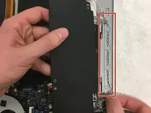 Осторожно снимите провода динамиков, заправленные под зажимы, расположенные по краю корпуса ноутбука.