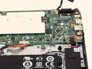 Найдите кабель, который соединяет динамики с материнской платой. Отсоедините кабель.