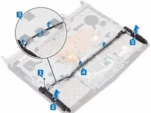 ПРИМЕЧАНИЕ: Отведите в сторону кабели клавиатуры и подсветки клавиатуры.