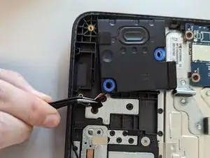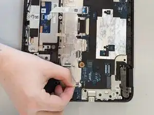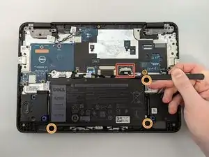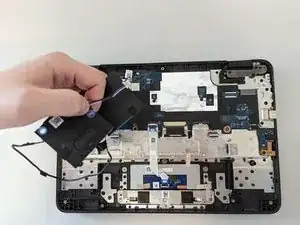 Динамики в Dell Chromebook 3110 очень слабо закреплены и легко снимаются после удаления батареи из устройства. Для этой замены не требуются специальные инструменты, но пинцет может быть полезен при работе в ограниченном пространстве.