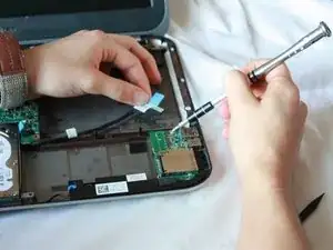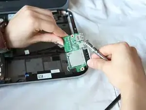 Используйте отвертку с битой J0, чтобы открутить два винта Phillips 6 мм, расположенные на дочерней плате.