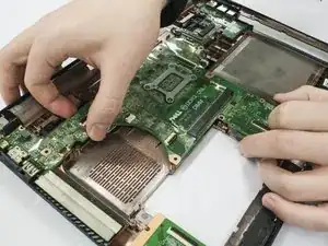 Поднимите материнскую плату и снимите её.